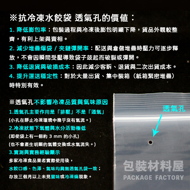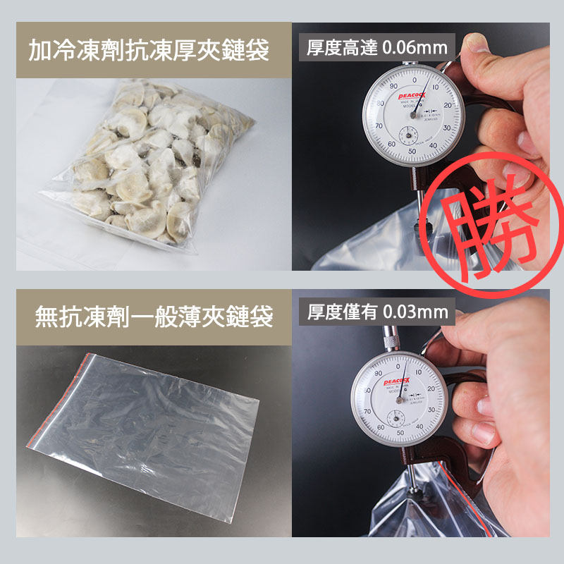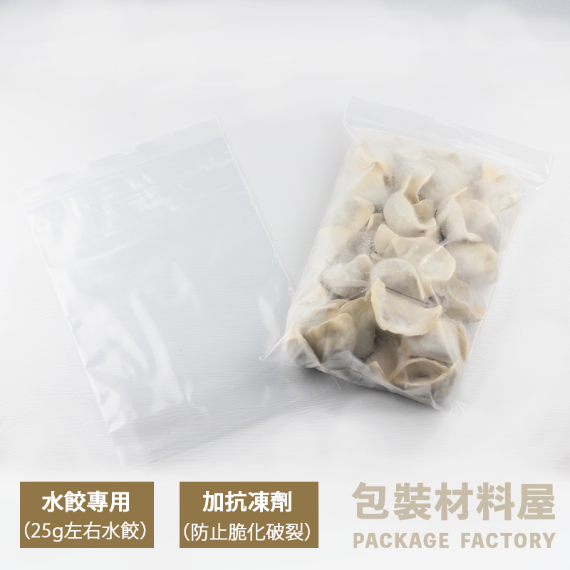 袋子材質本身加有抗冷凍劑 (抗冷凍 防止冷凍脆裂 保護冷凍水餃)