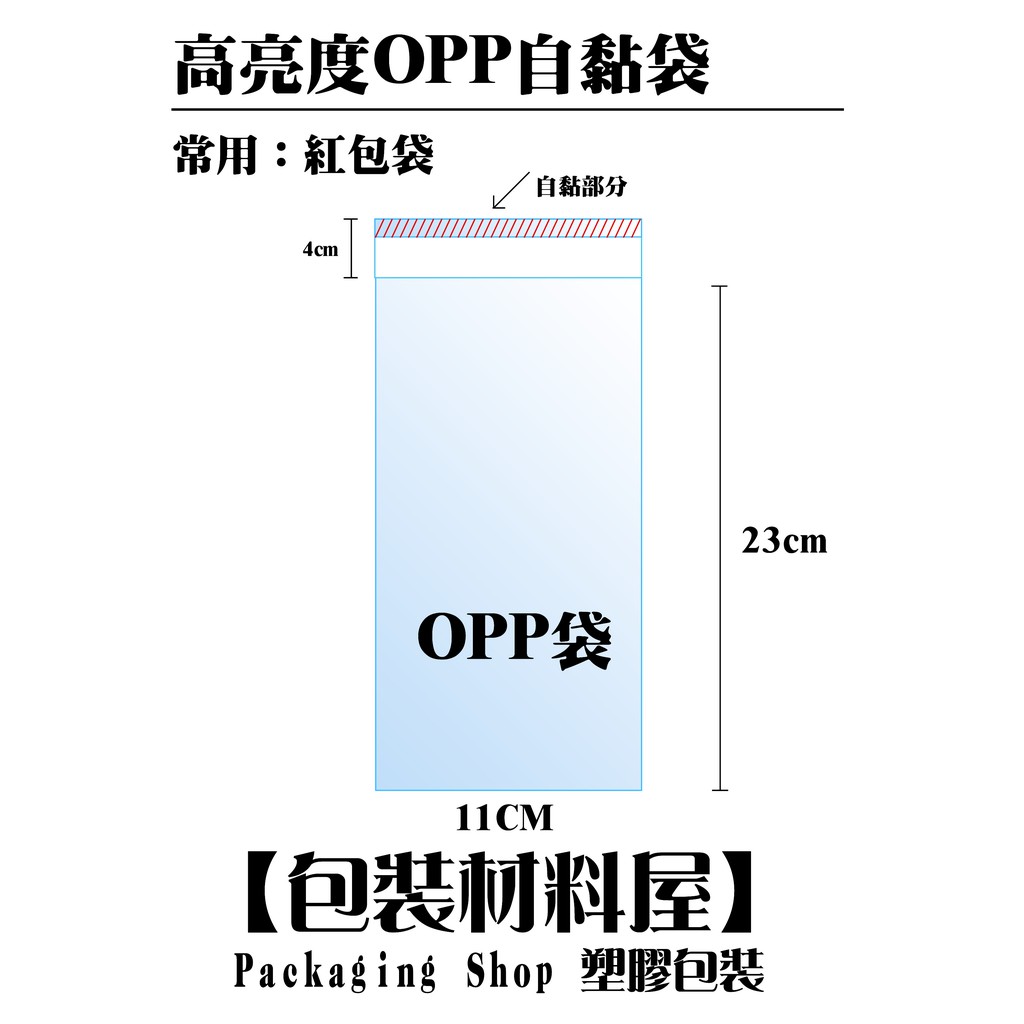【包裝材料屋】加長型紅包袋外袋 11*23/27 cm | 100入 OPP高明亮自黏袋.紅包袋.文具用袋